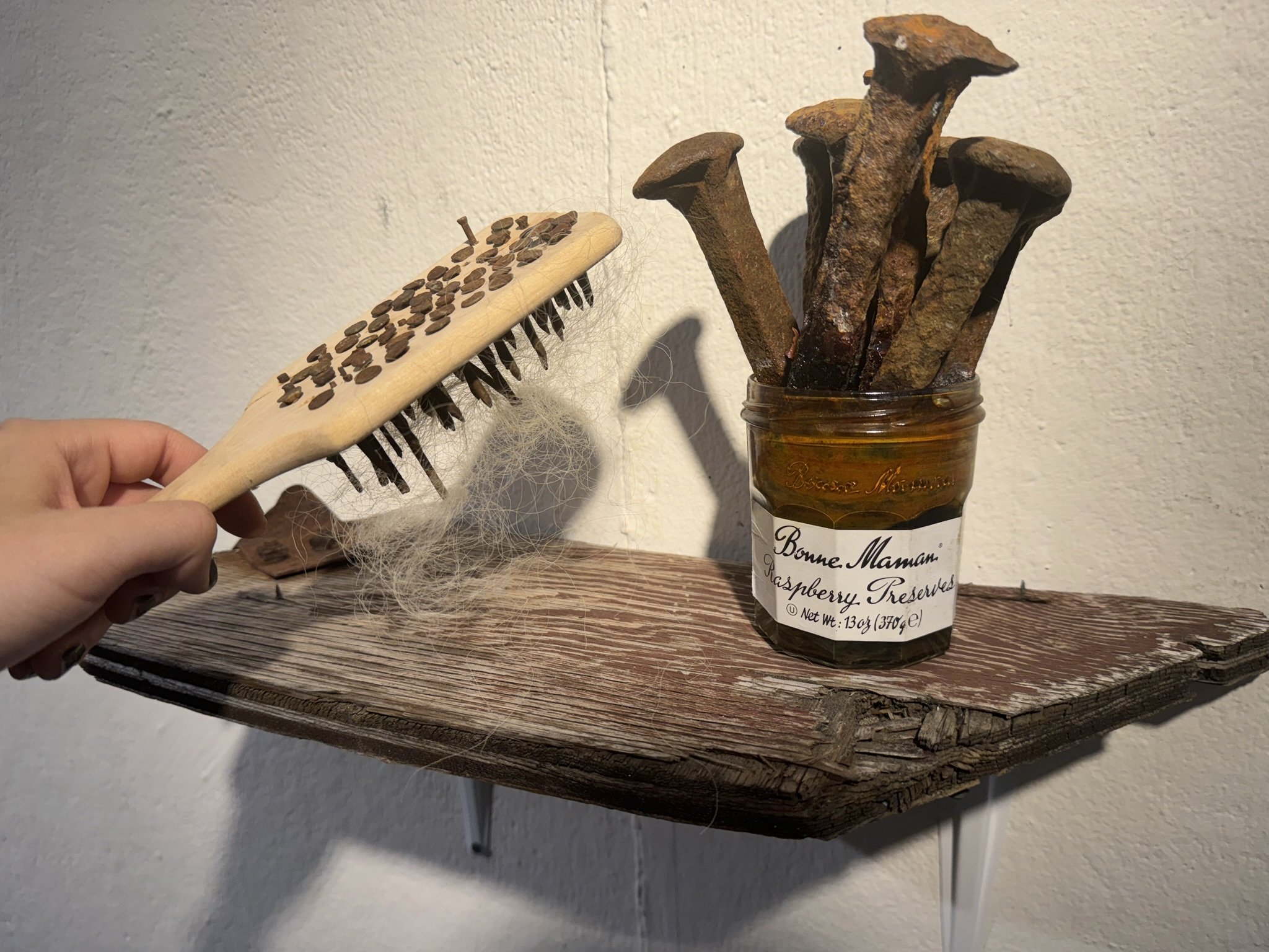 Rusted metal found on the streets of NYC, Philly, and Baltimore, animal hair