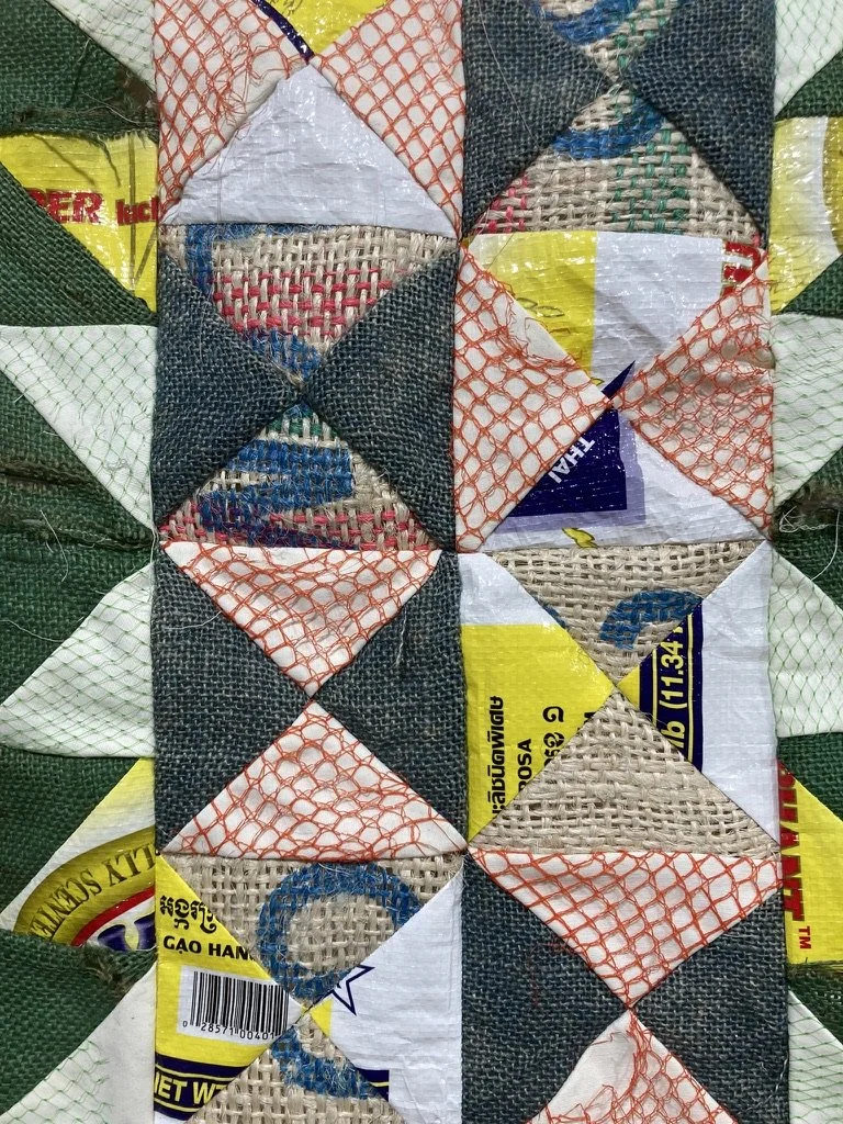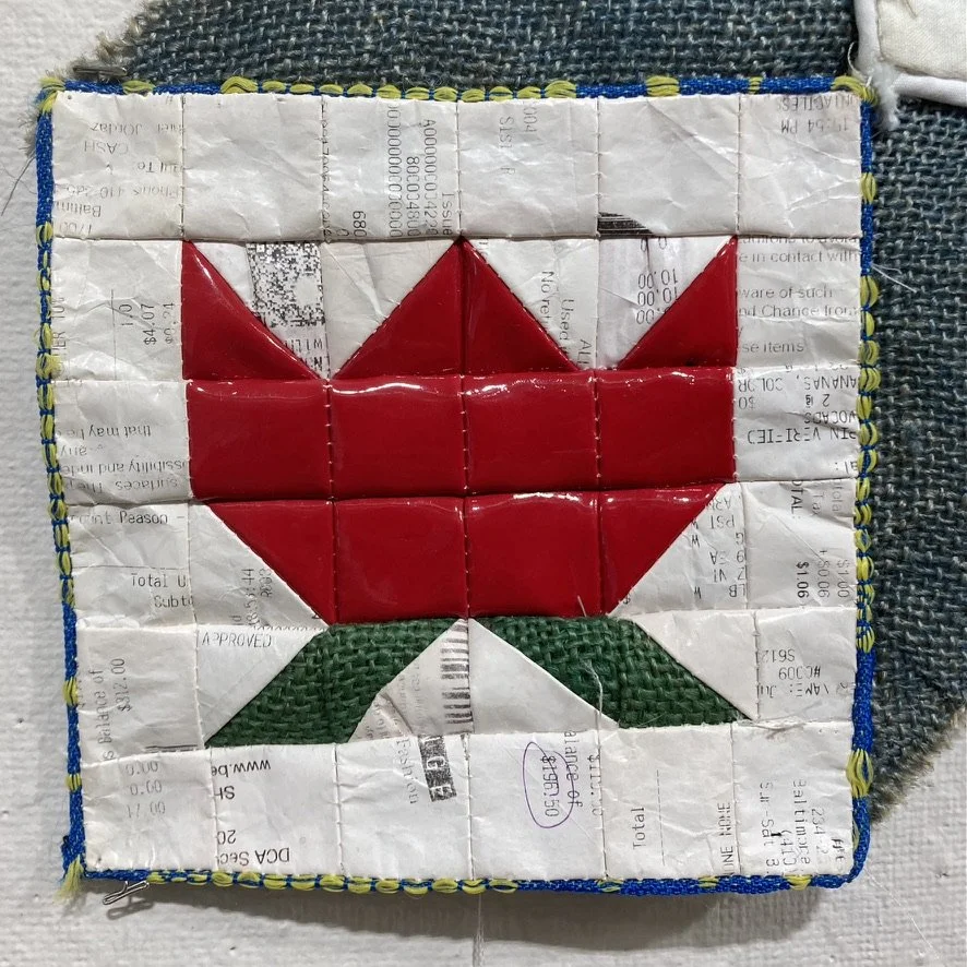 Burlap coffee bags, receipts, mesh fruit bags, rice bags, wrappers and other assorted packaging